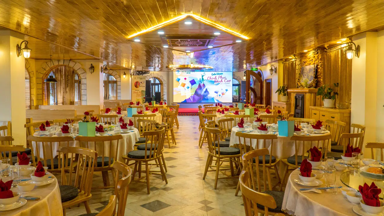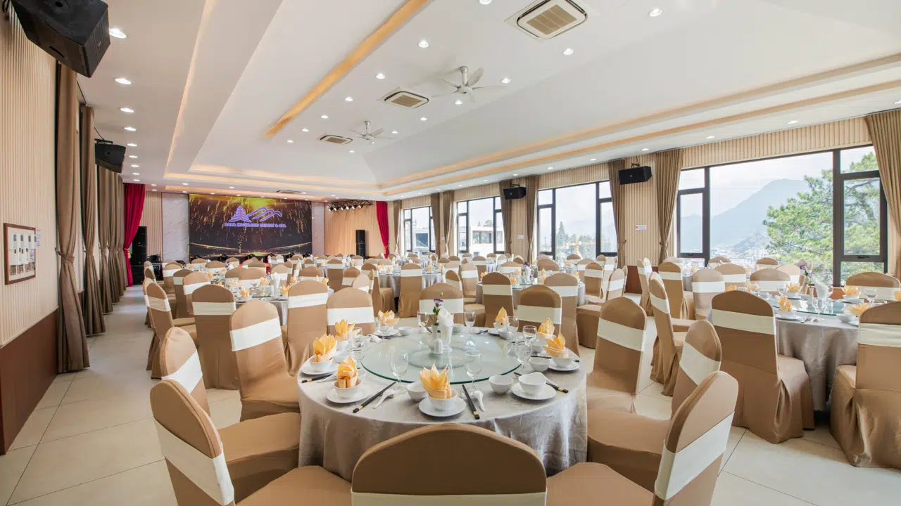 Hội trường lớn nhất của khách sạn có sức chứa tối đa 300 khách, là nơi thích hợp để tổ chức các hội thảo, sự kiện và tiệc dạ tiệc quốc tế. Sảnh B là một không gian trang trọng đáng mơ ước với phong cách đương đại và nhấn mạnh vào các chi tiết trang trí của cao nguyên Tây bắc và rừng, thích hợp cho các bữa tiệc của 150-300 khách.